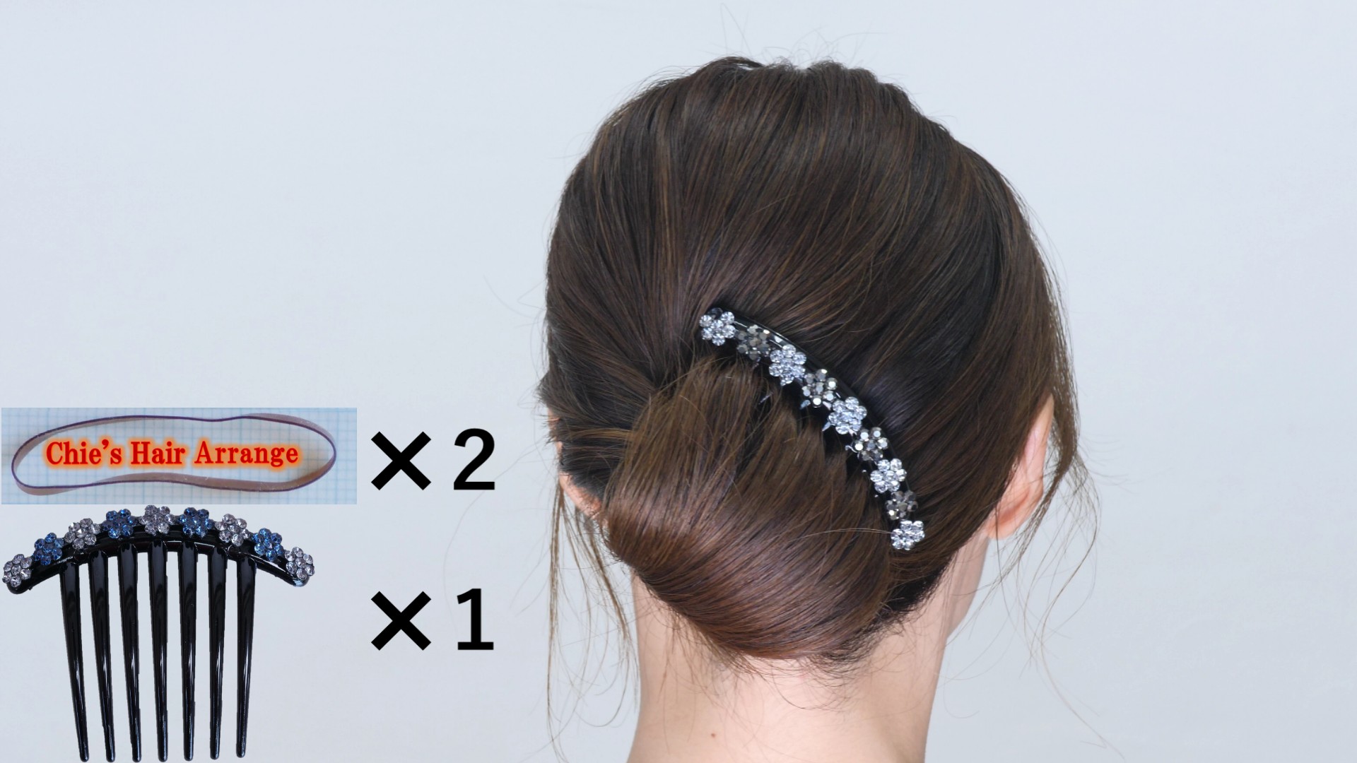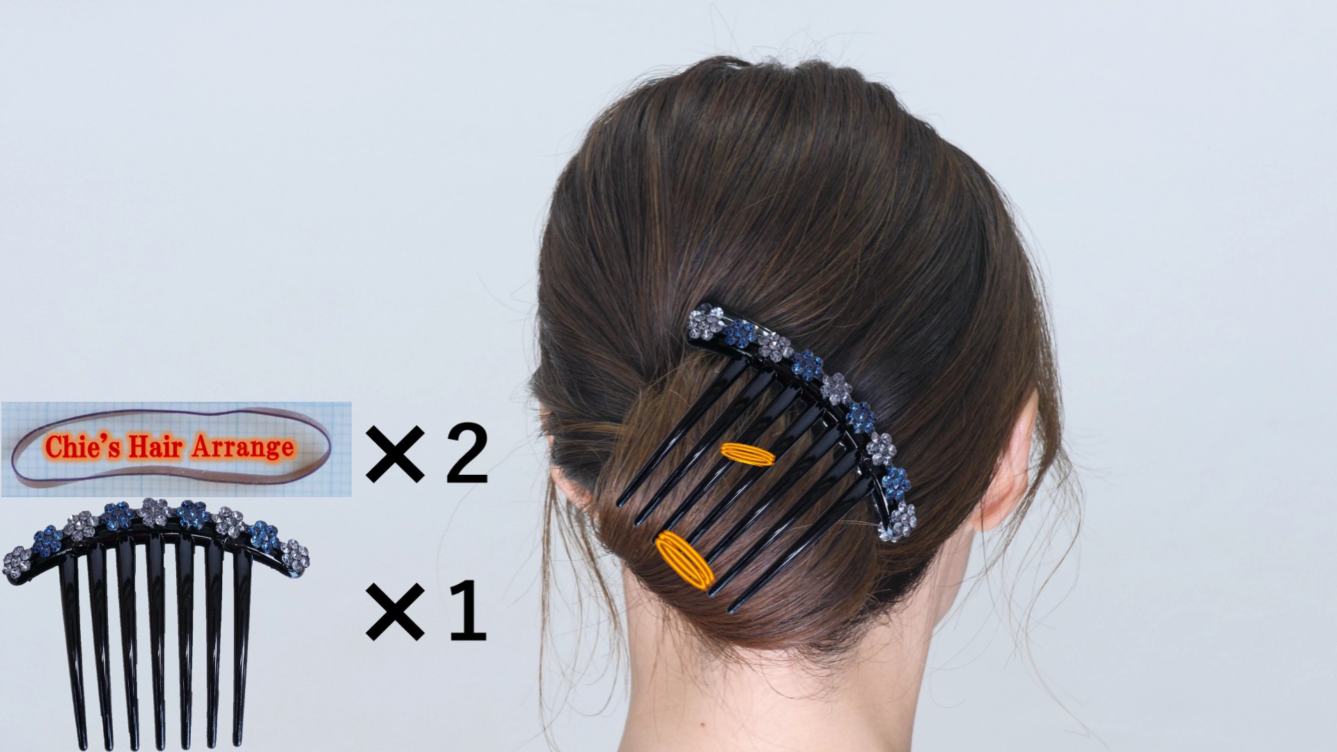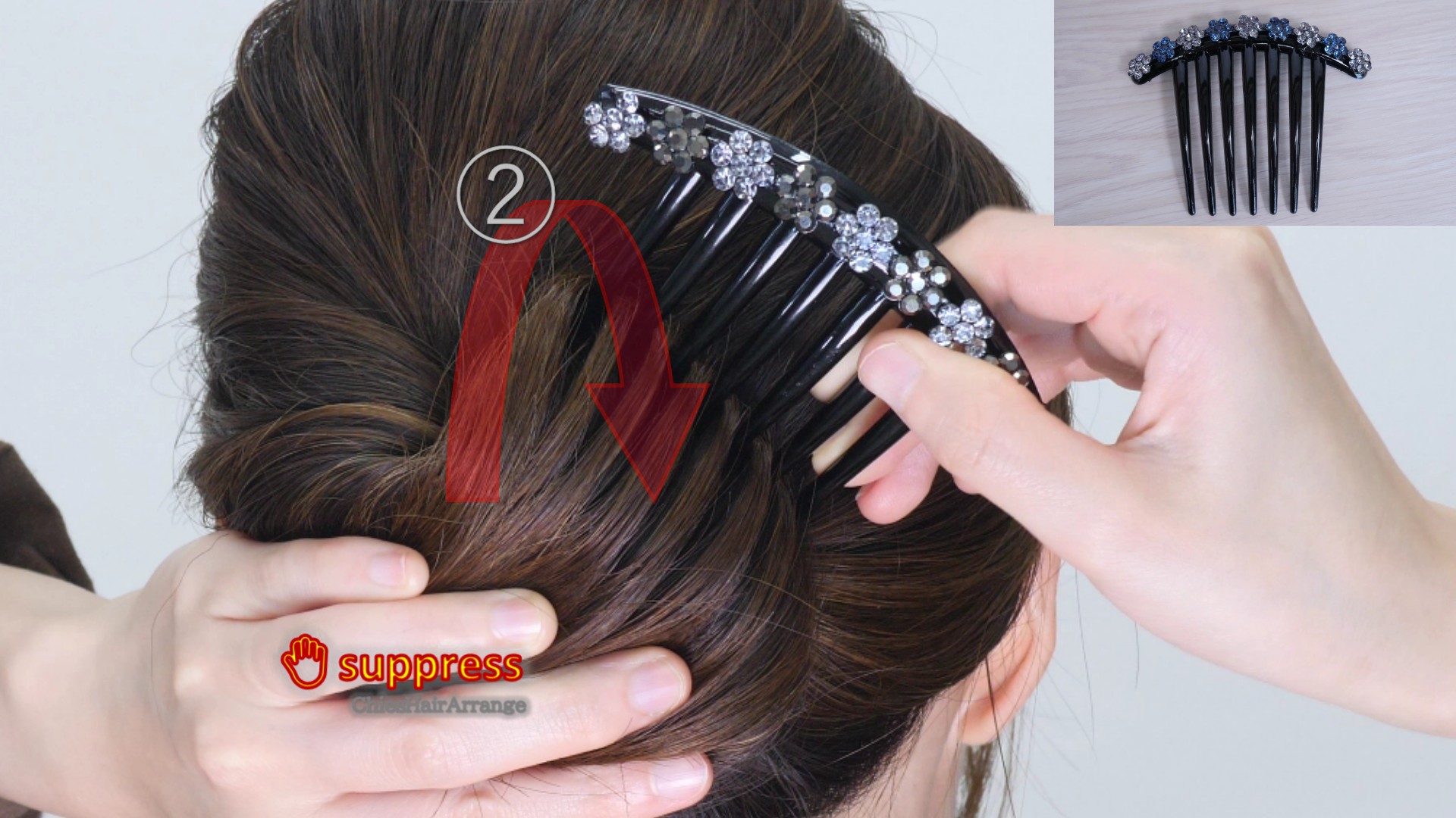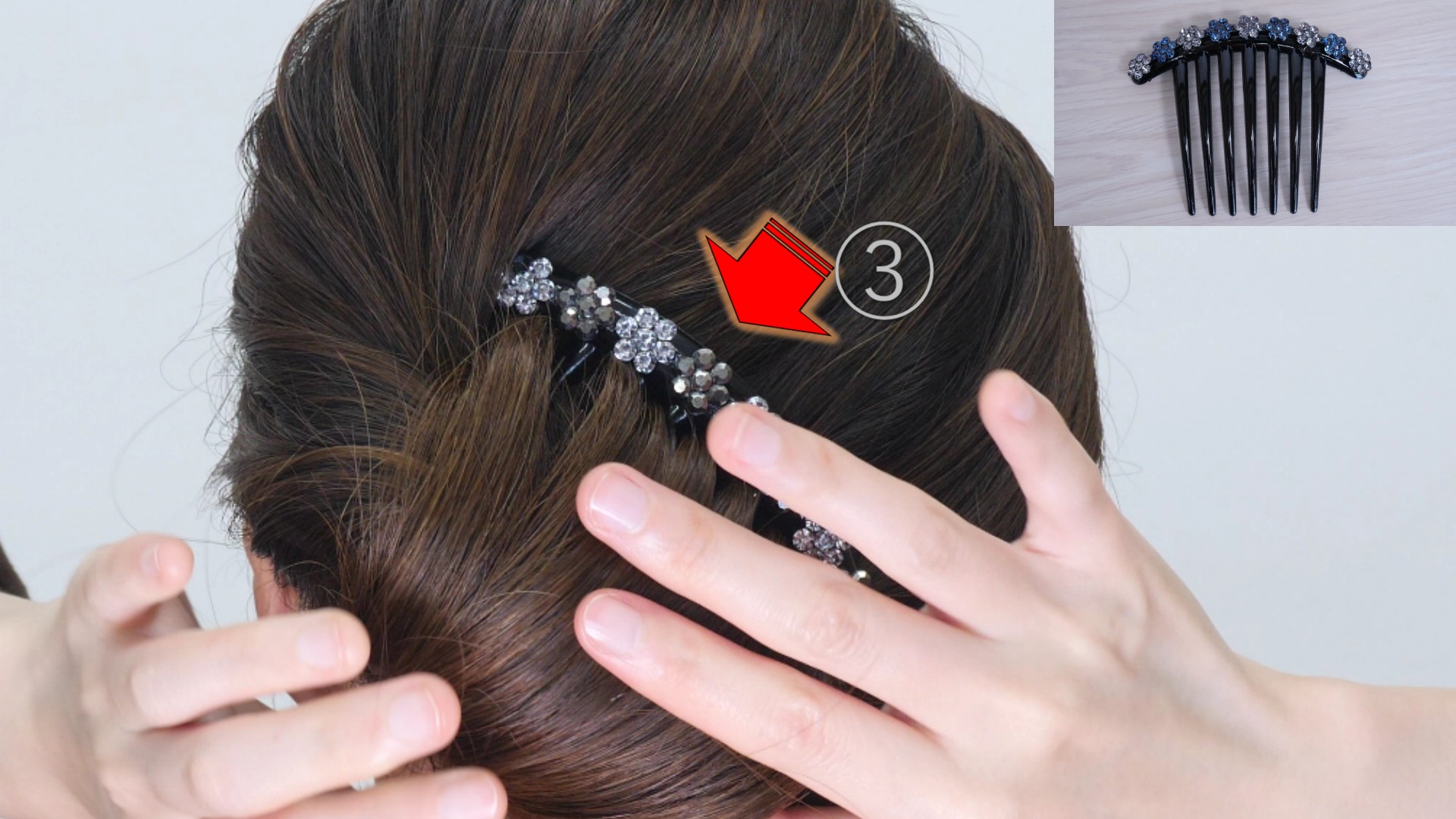 ③の絵のように夜会巻きコームをしっかり奥まで差し込みます。