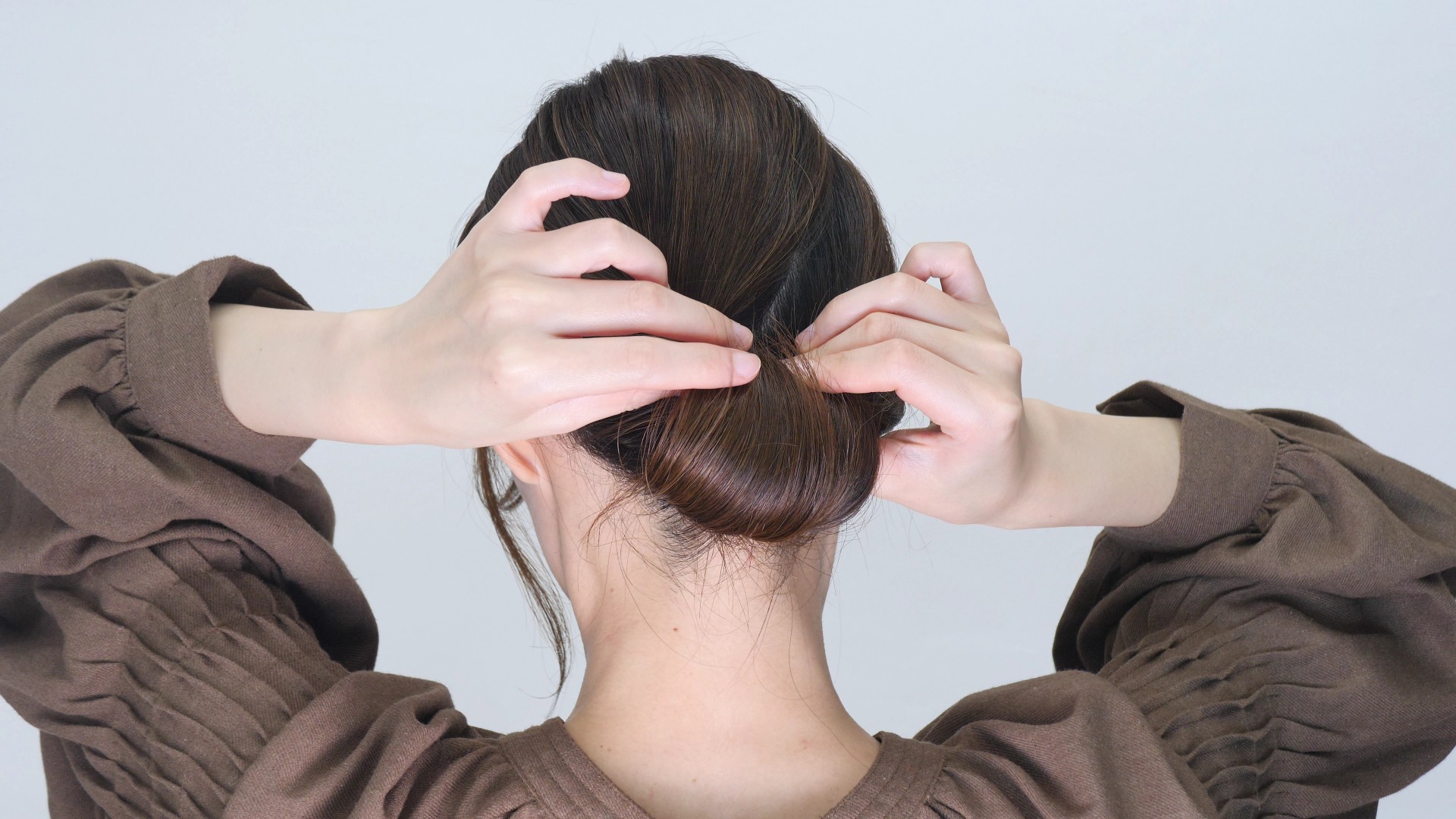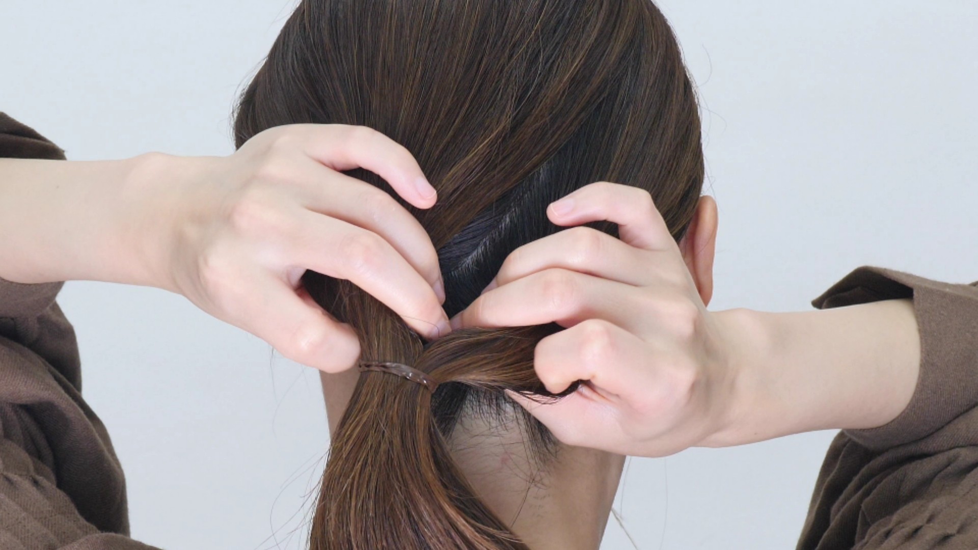 また、動画ではヘアゴムを1本で束ねていますが、毛量が多い人は2本使用してもOKです。